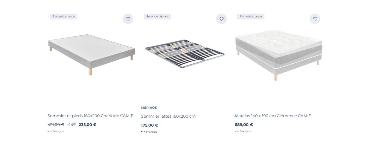 Les produits sont différenciés des produits neufs dans les différentes pages catégories grâce à l’ajout d’un flag « seconde chance ».