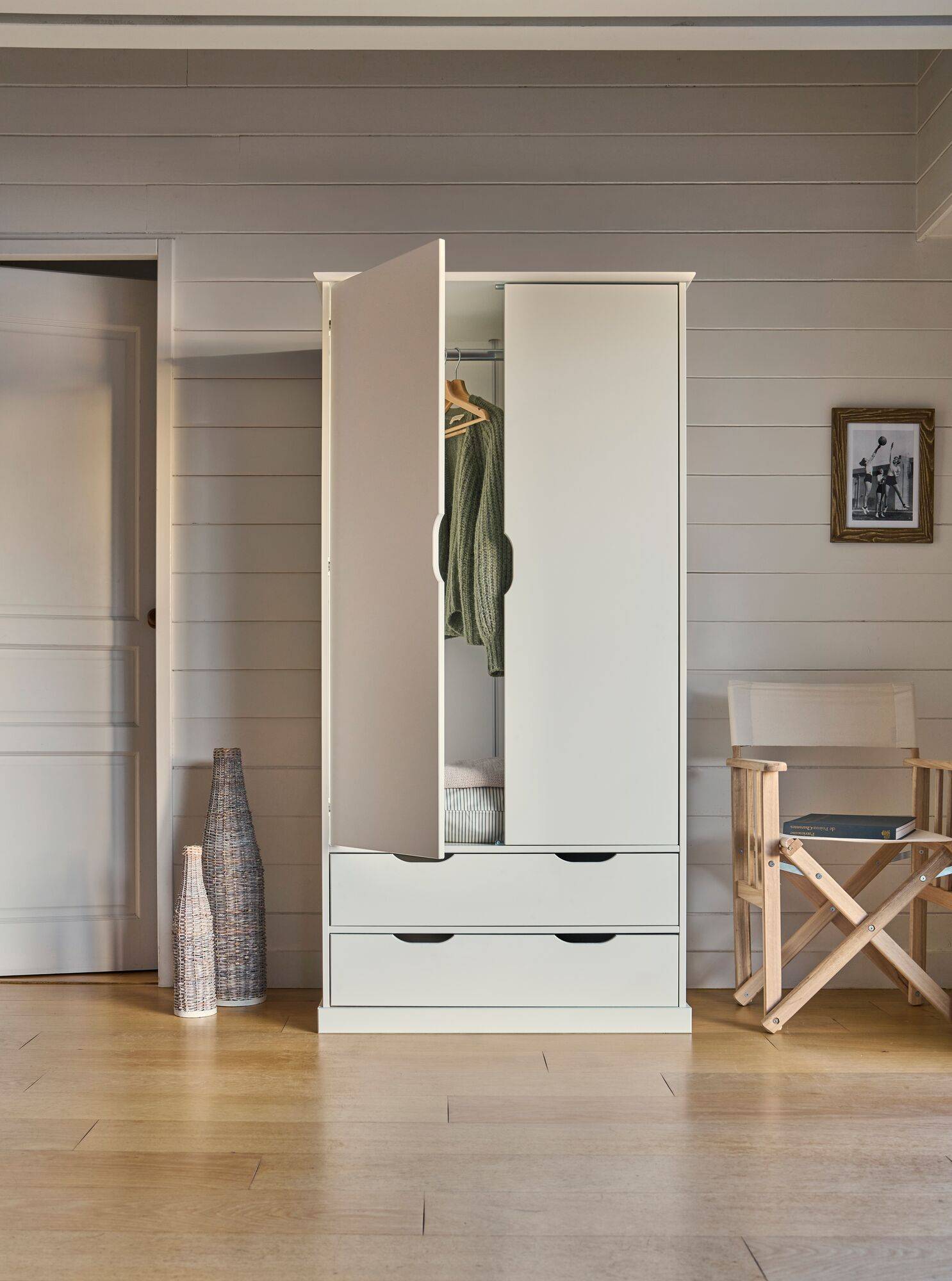 Adoptez l'armoire Théa et aménagez un espace de rangement à la fois élégant et fonctionnel.