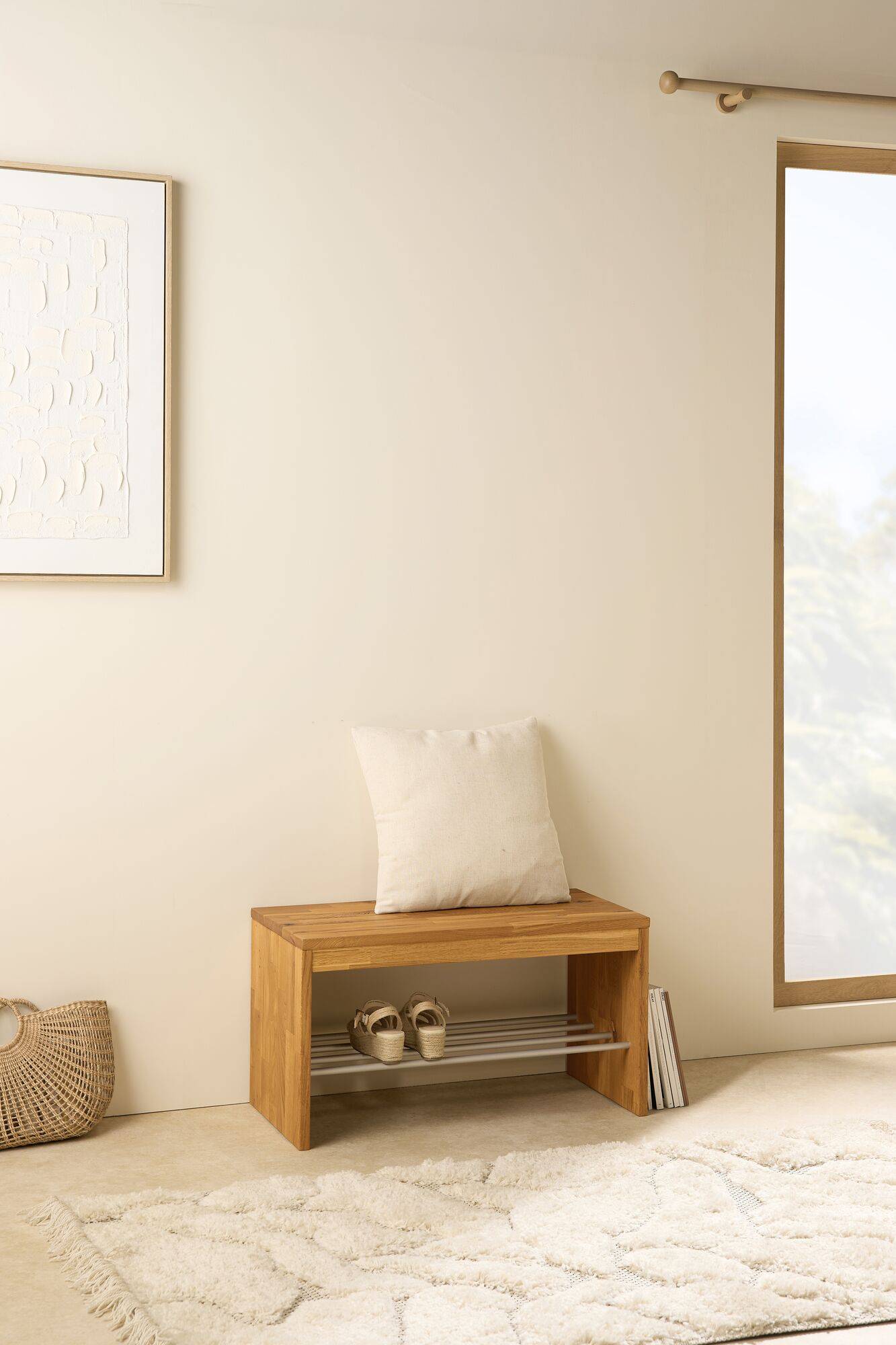 Apportez du style et de l’ordre à votre entrée avec le banc à chaussures en bois massif 1 place Cyriel, une pièce aussi élégante que fonctionnelle. Parfait pour organiser vos chaussures tout en offrant un siège pratique, ce banc optimise votre espace tout en ajoutant une touche de nature et de raffiné à votre intérieur.