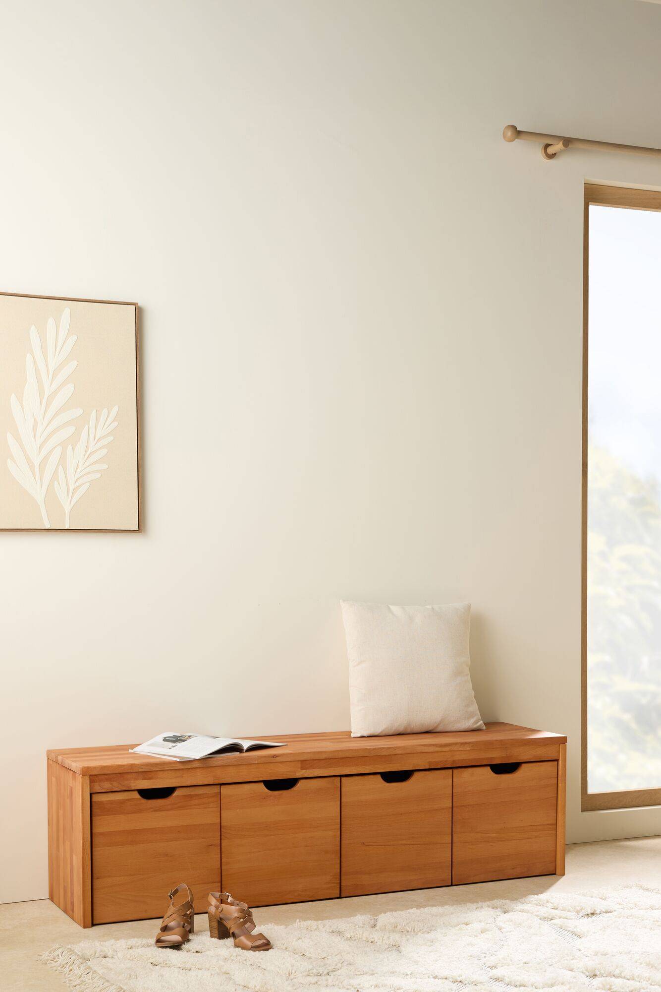 Sous son assise confortable, le banc Cyriel intègre 4 cubes de rangement sur petites roulettes, parfaits pour organiser chaussures, livres, plaids ou autres objets du quotidien. C’est l’allié idéal pour optimiser votre espace tout en ajoutant une touche déco intemporelle.