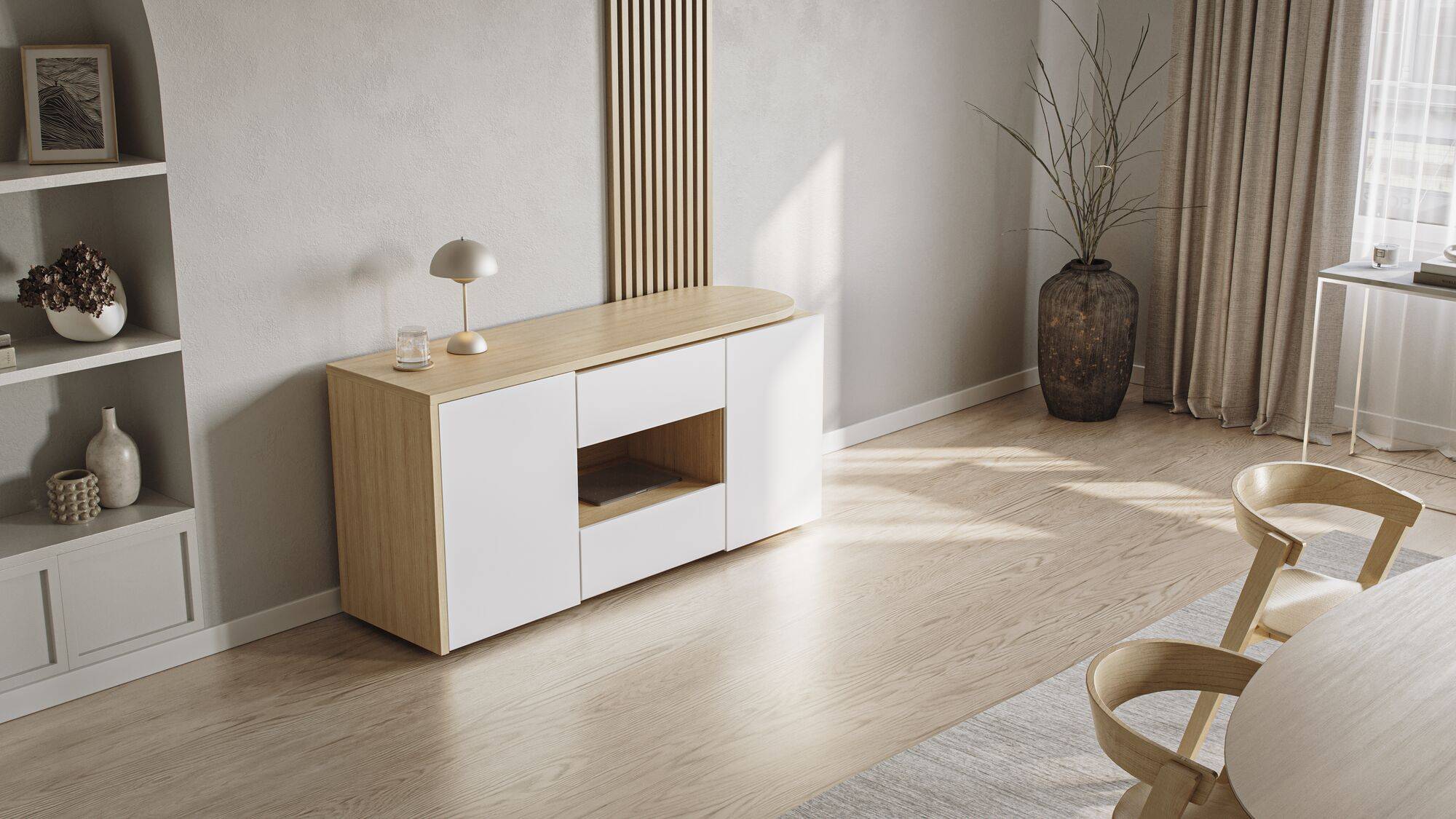 transforme en buffet et vous pouvez ainsi l'installer où vous voulez. Parfait