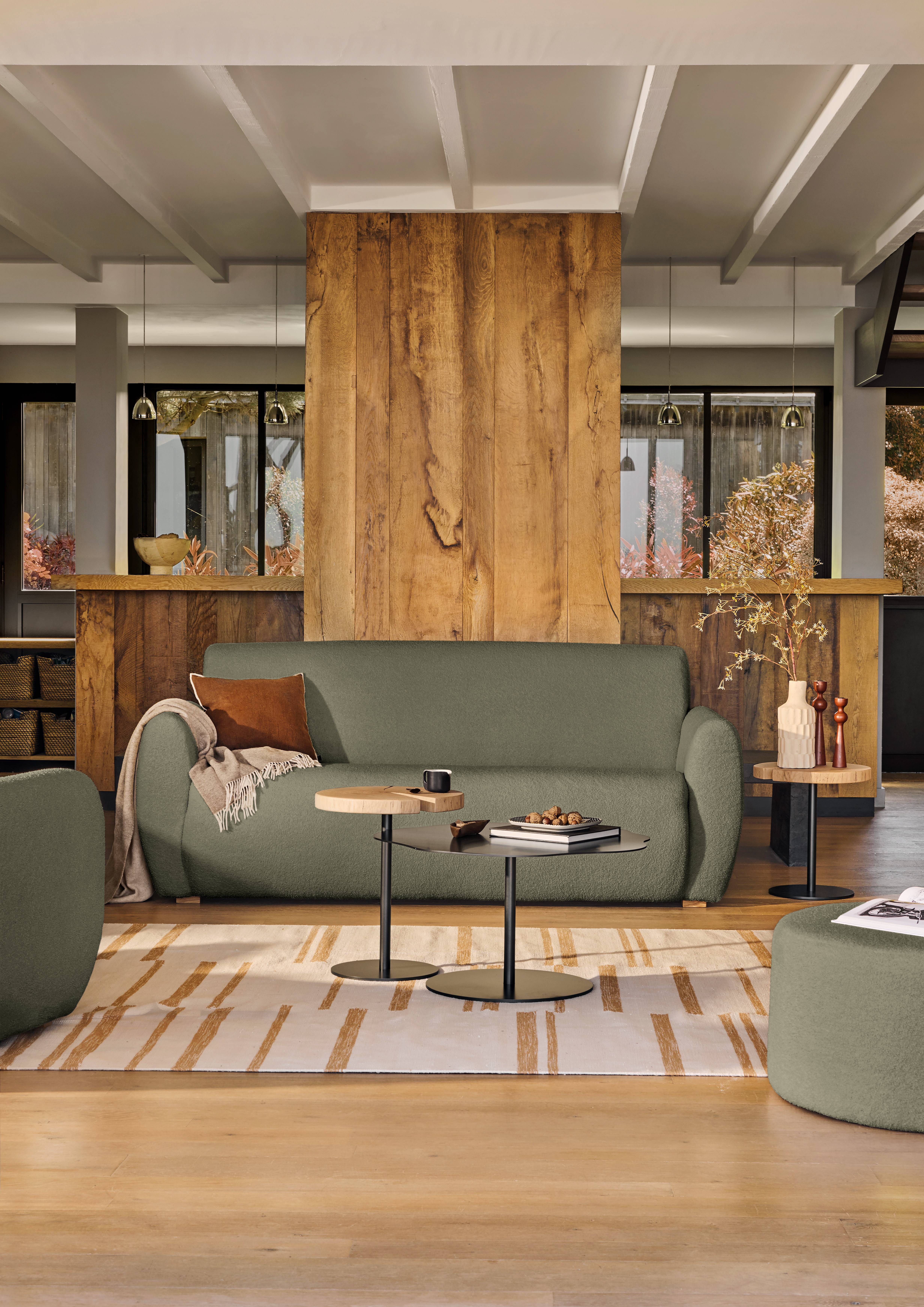 Vous pouvez coordonner votre canapé Ome avec le fauteuil et les poufs de la même collection.
