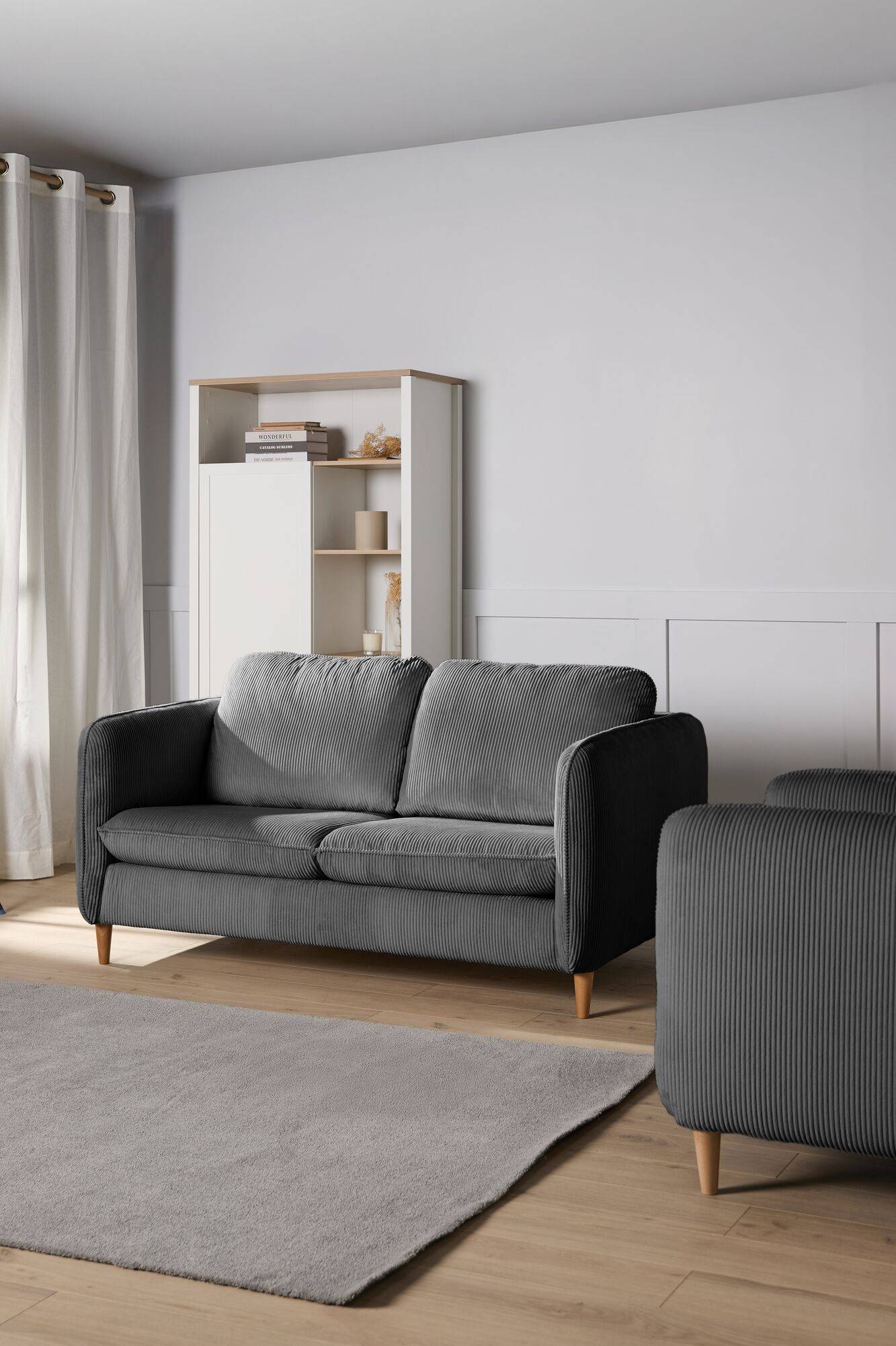 Canapé convertible Portimo : velours côtelé et design gain de place.