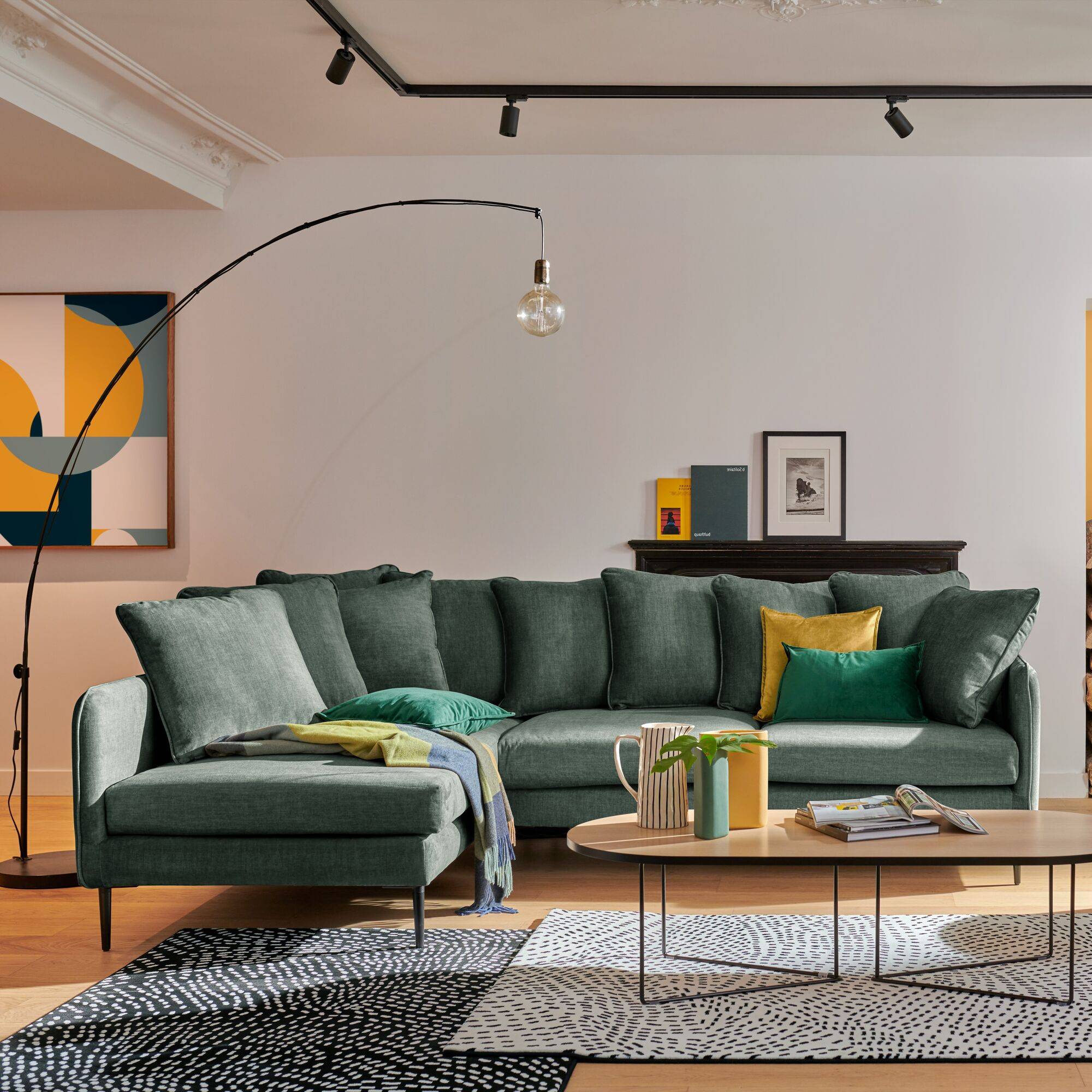 Le canapé d'angle velours Olympe séduit par ses lignes épurées et son élégante simplicité.