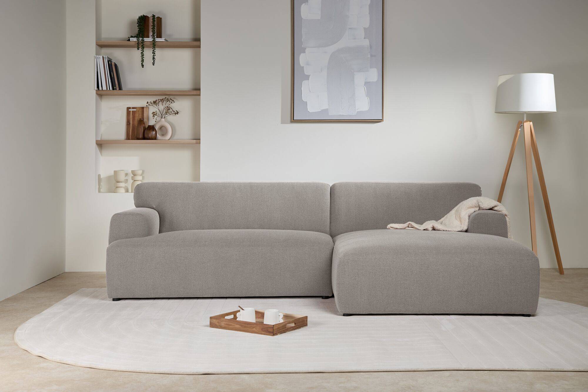 Le canapé d'angle Pavel souligne à la fois le confort et le design moderne, tout en évoquant un côté cocooning et convivial grâce à ses grandes dimensions et ses formes arrondies.