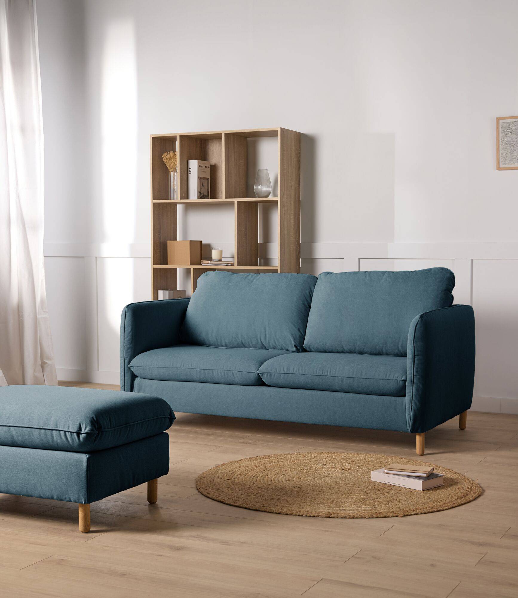Il a fière allure avec ses pieds en chêne massif et son élégante finition passepoil. Son tissu chenillé lui apporte toute la douceur nécessaire à un confort optimal.