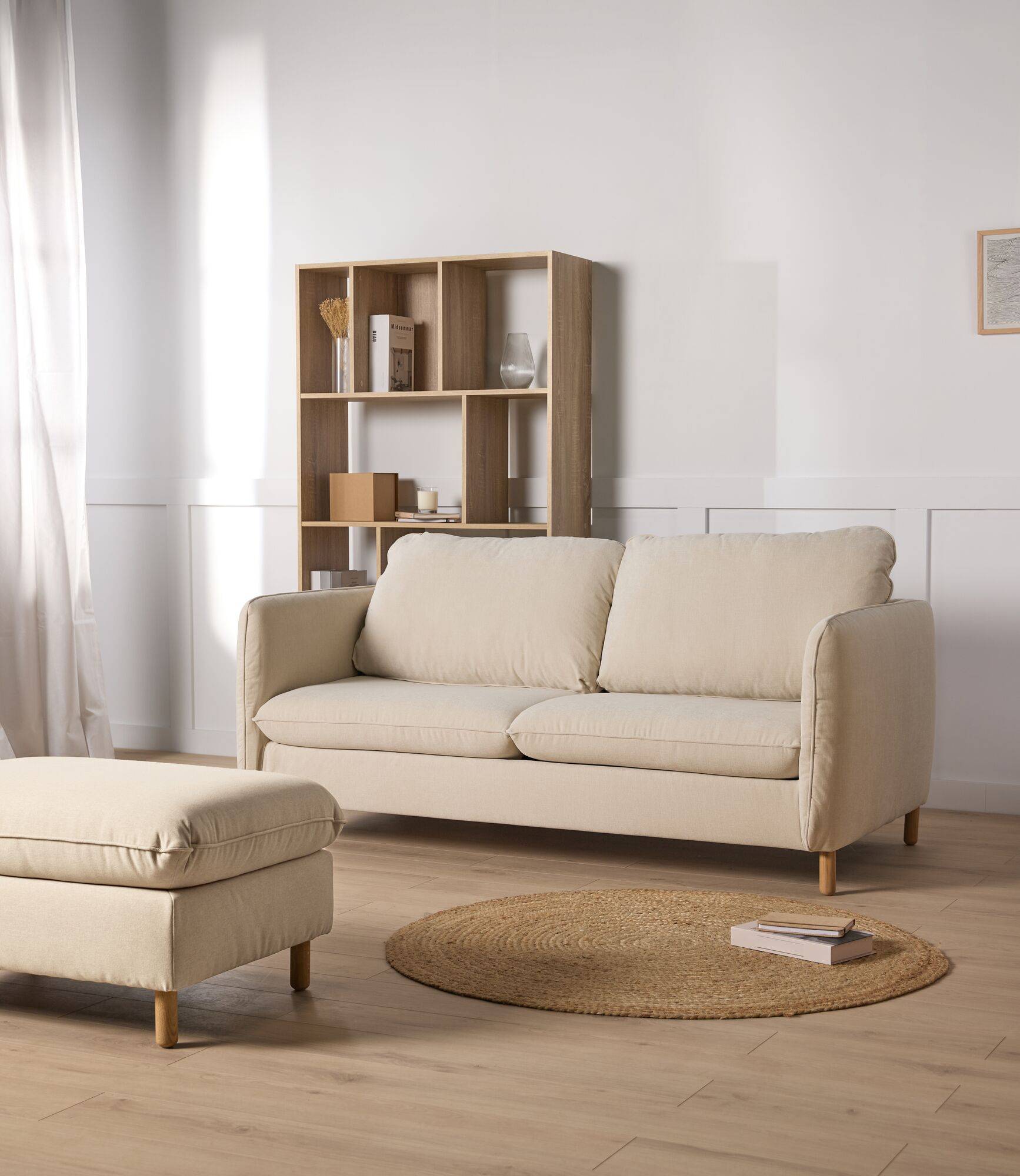 Il a fière allure avec ses pieds en chêne massif et son élégante finition passepoil. Son tissu chenillé lui apporte toute la douceur nécessaire à un confort optimal.