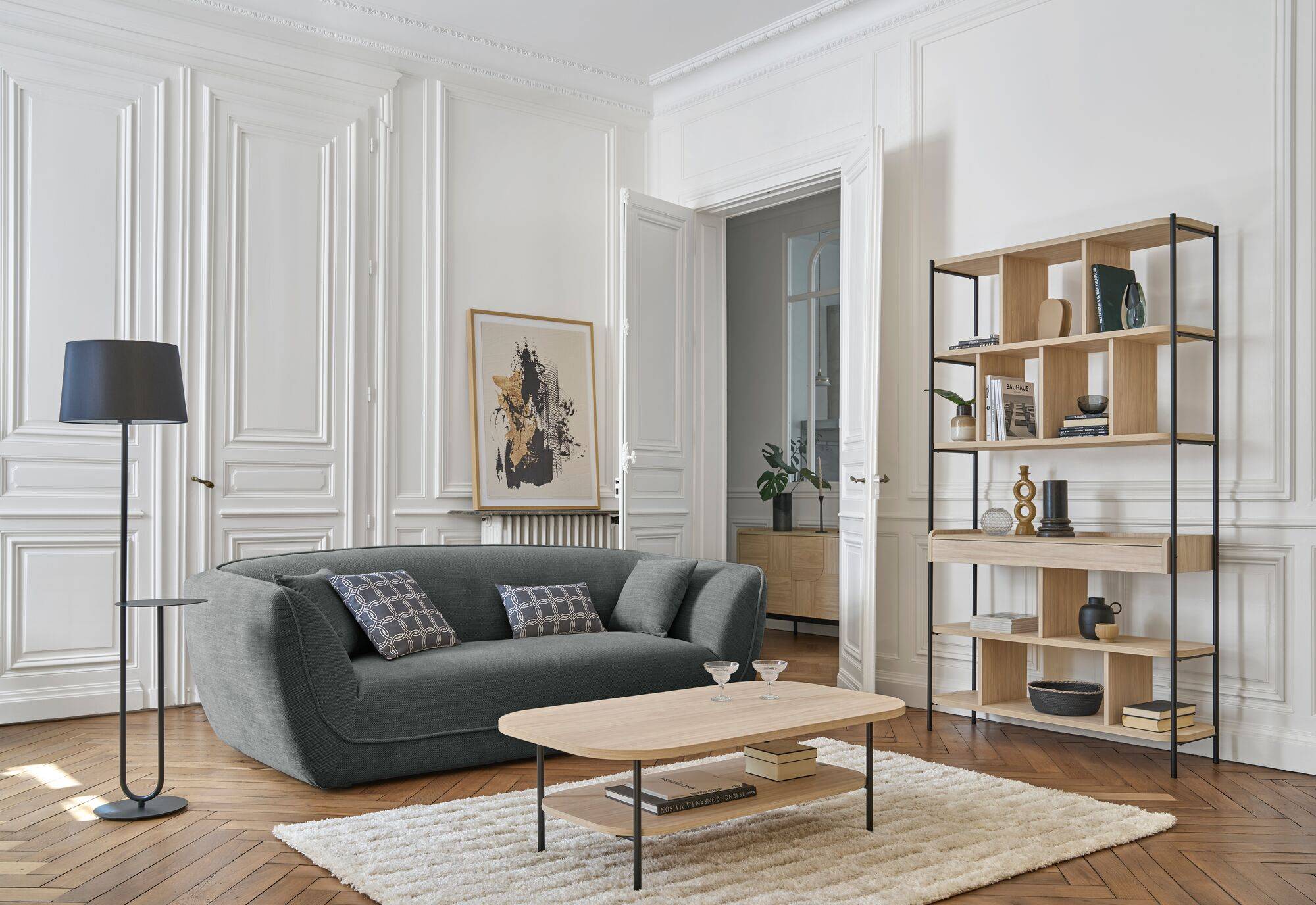 L'allure unique du canapé Phara ne manquera pas d'attirer tous les regards. Son esthétique contemporaine, alliée à des lignes généreuses apporte une touche de modernité dans votre salon.
