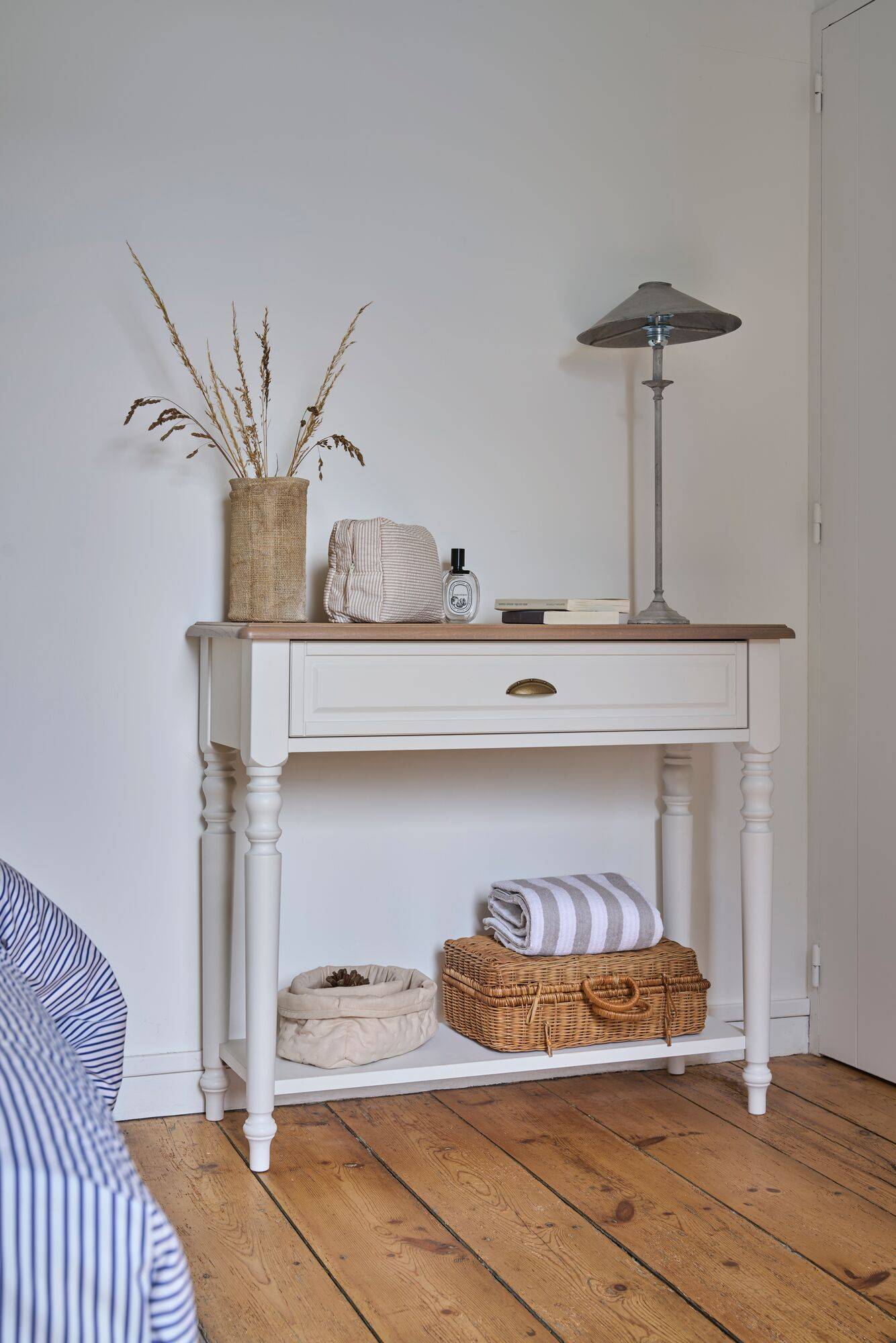 Console avec tiroir blanc et bois Apolline