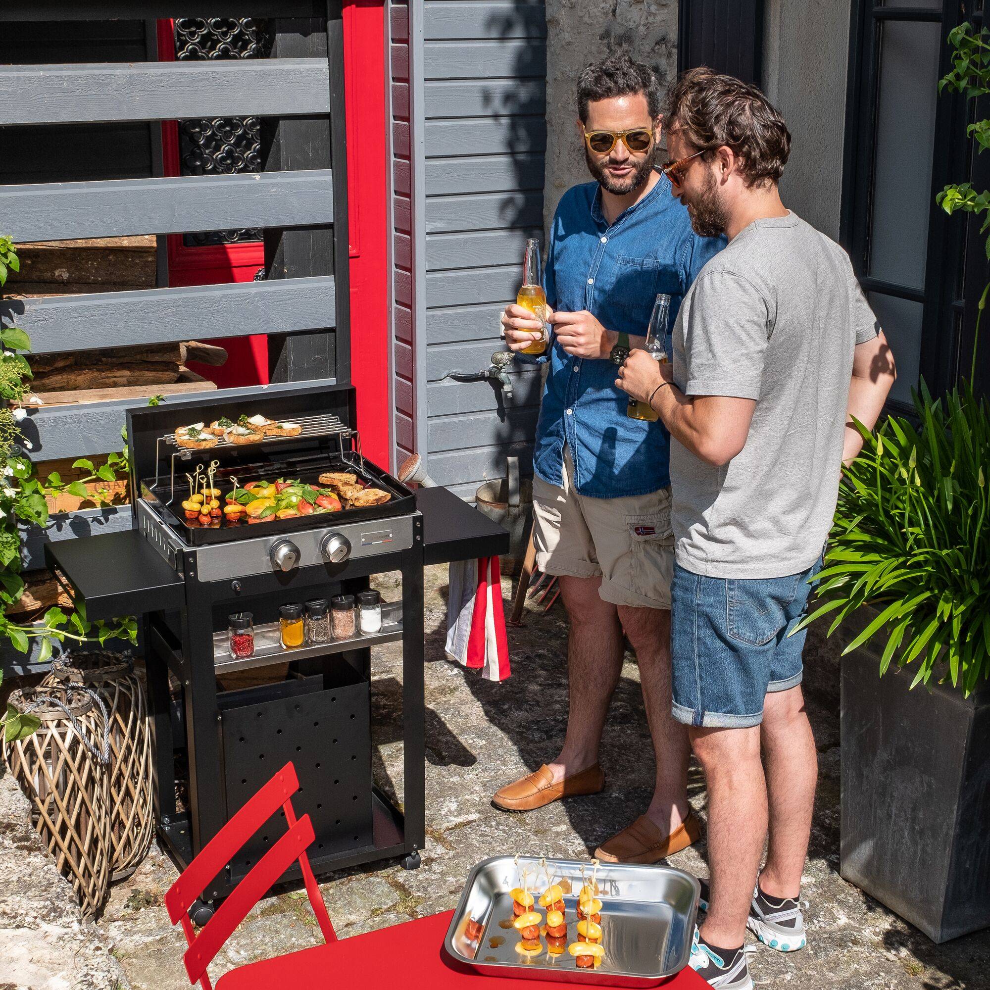 La collection La Plancha Française offre un produit complet, modulable et personnalisable. Conçue pour durer dans le temps, cette plancha possède une plaque en fonte émaillée inclinable qui assure une inertie thermique uniforme et un entretien facile. Les brûleurs inox trompette offrent une montée rapide de la chaleur et permettent de maintenir une température élevée et constante de la plaque, ce même si des aliments froids sont ajoutés. La plaque contribue également à l’Effet Maillard, caractérisé par une saisie rapide et à haute température des aliments, qui caramélisent dans leurs propres sucs. Cet effet confère une croute à l’aliment, qui conservera ainsi un aspect fondant à l’intérieur.