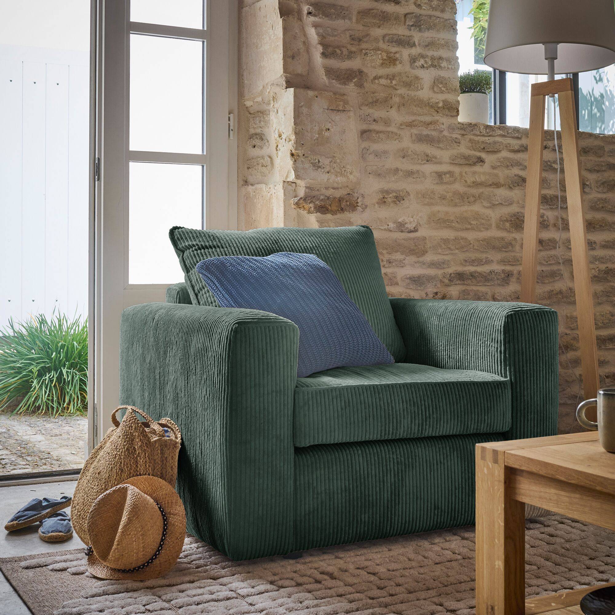 Le fauteuil Otto complète avec élégance et confort votre espace salon. Avec son revêtement en velours côtelé doux au toucher, il offre une touche rétro et à la fois sophistiquée.