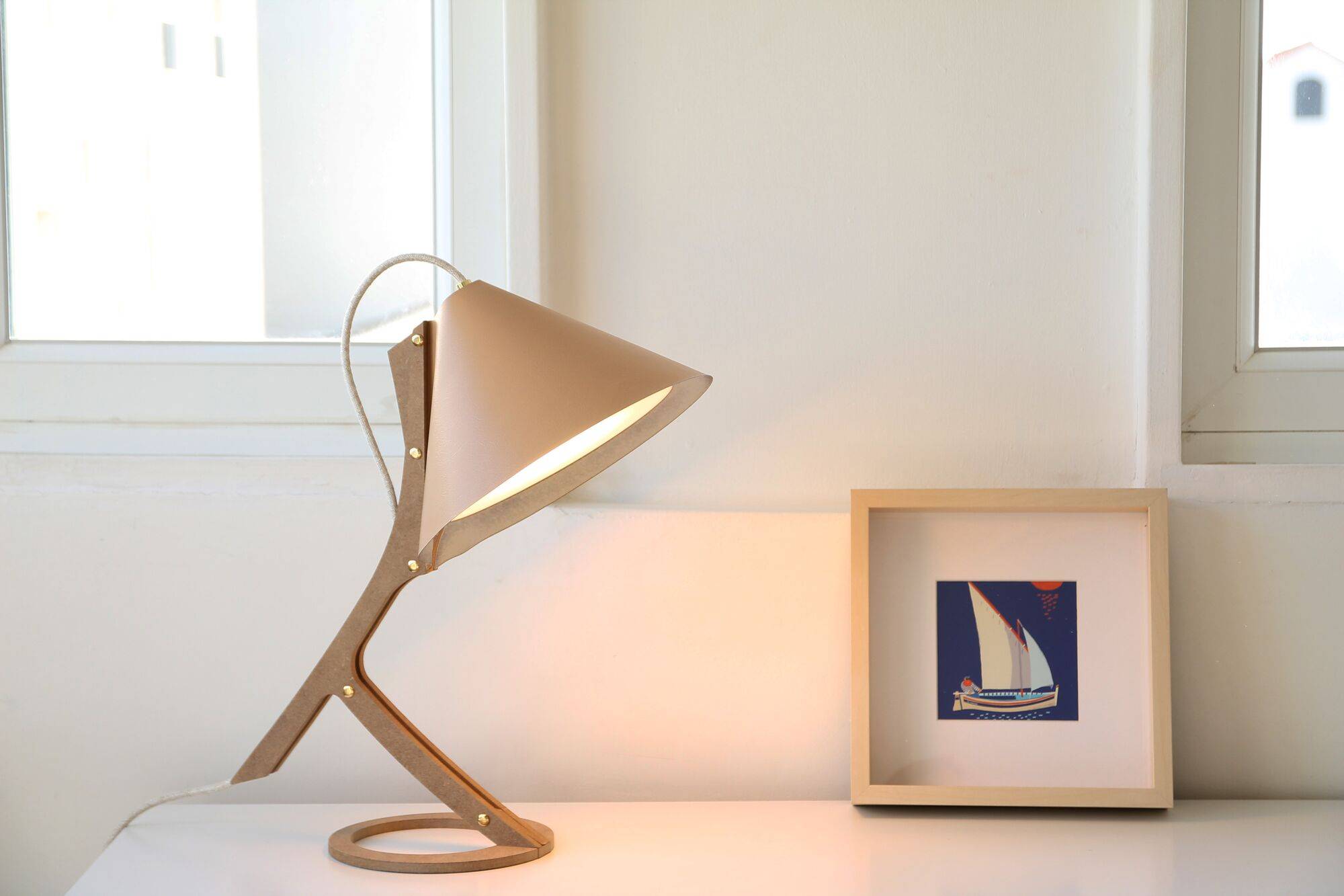 Lampe à poser Silence cuir beige