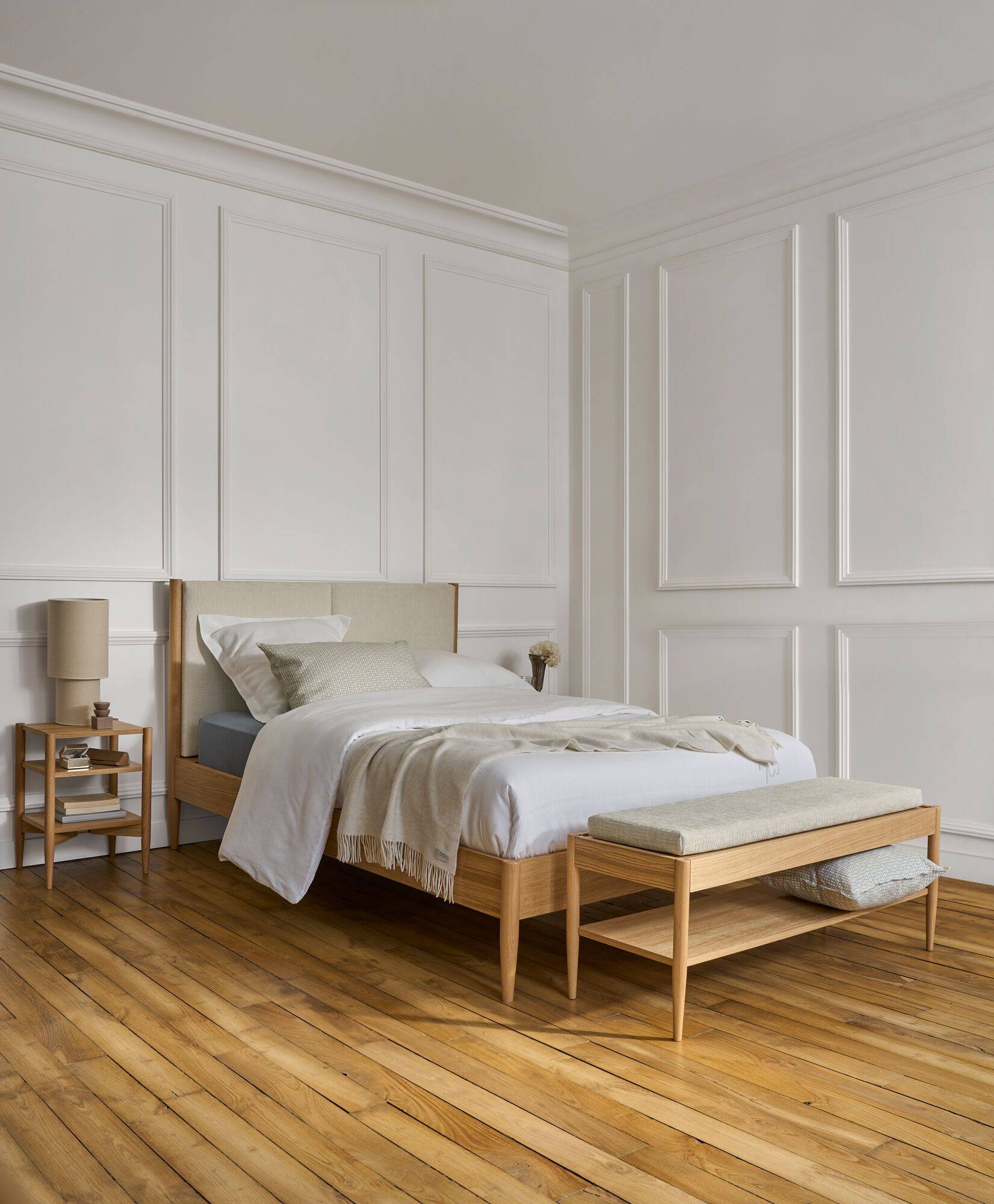 Découvrez un lit qui transforme instantanément l’ambiance de votre chambre grâce à son style épuré et accueillant.