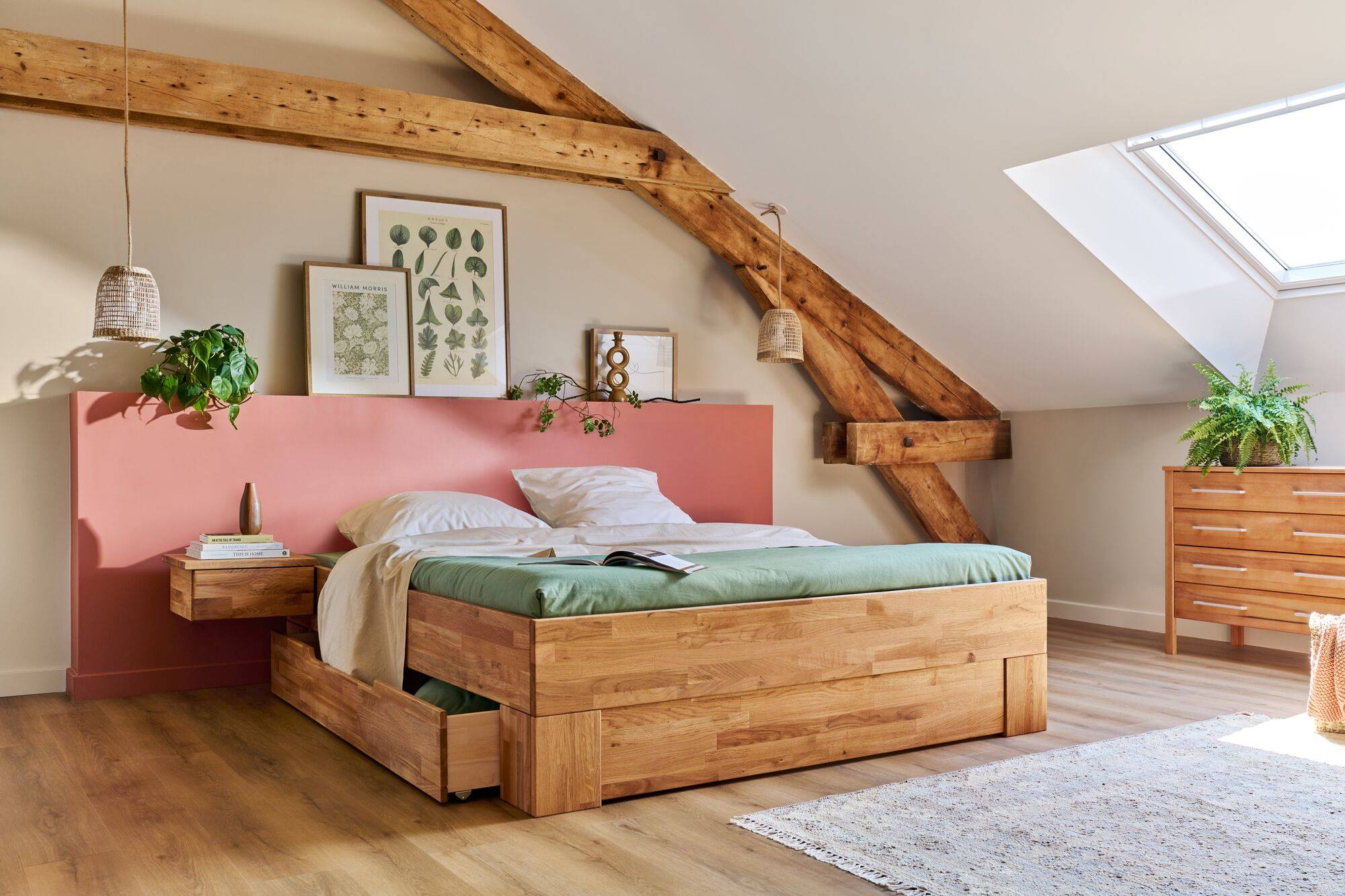 Pour créer une atmosphère harmonieuse et chaleureuse, associez-le à la commode ou l'armoire de la même collection. Ce lit existe aussi avec une tête de lit intégrée.