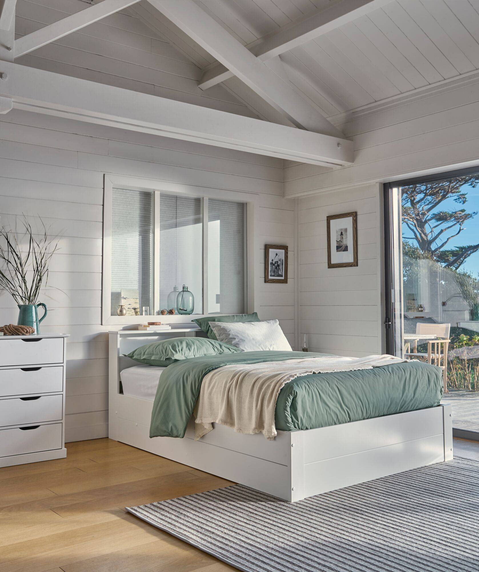 L’ouverture au pied du lit Thibault permet de révéler un vaste espace de rangement, idéal pour organiser vos affaires du quotidien, du linge de lit aux vêtements, en passant par vos objets personnels. Son mécanisme d’ouverture fluide garantit un accès facile et pratique, tout en optimisant l’espace de votre chambre.