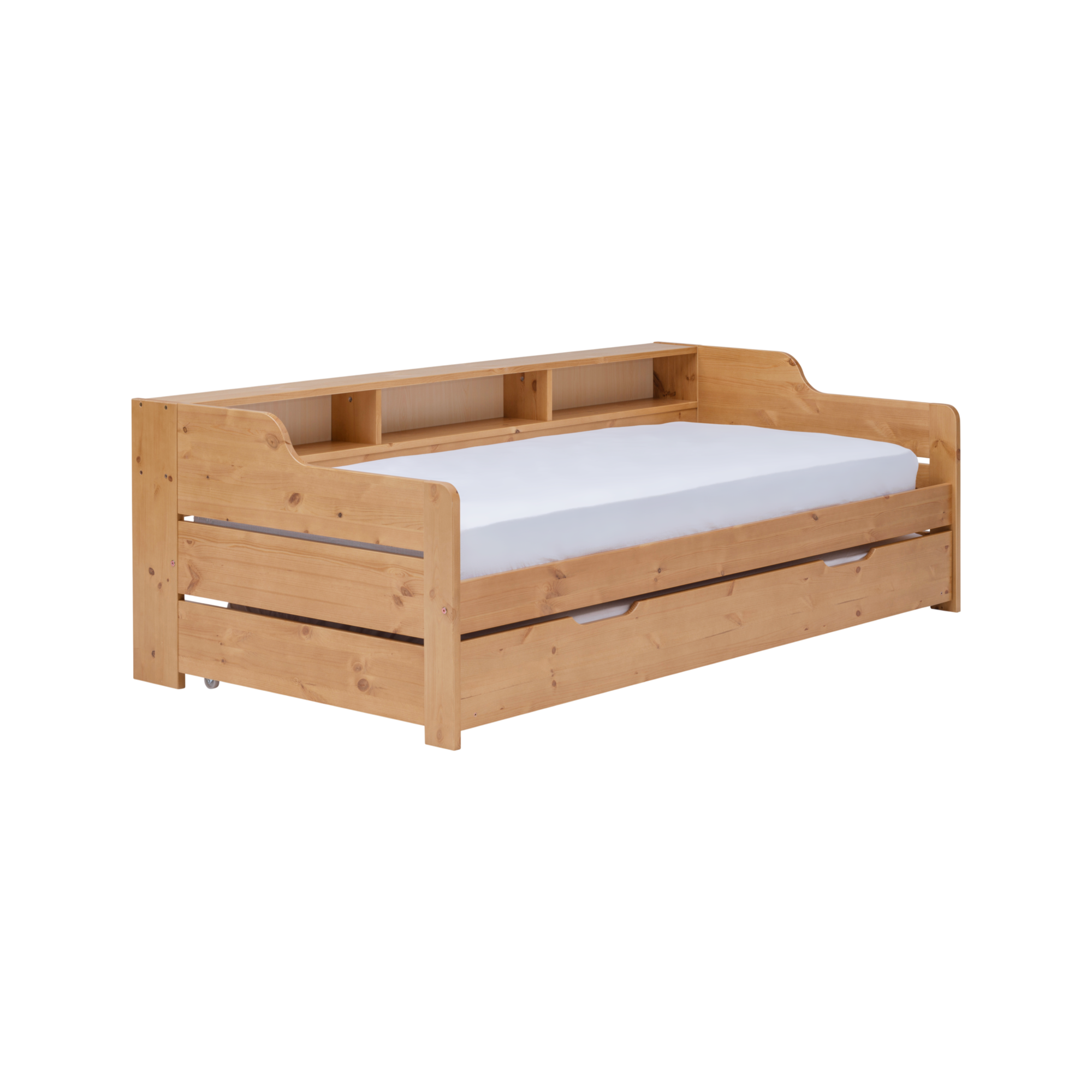 Le lit Timéo, au style nature, offre une ambiance douce et chaleureuse à votre intérieur. Il conviendra aussi bien à une chambre d'enfant qu'à une chambre d'ami. Fonctionnel, il offre un couchage supplémentaire avec son tiroir-lit qui peut également servir de tiroir de rangement.