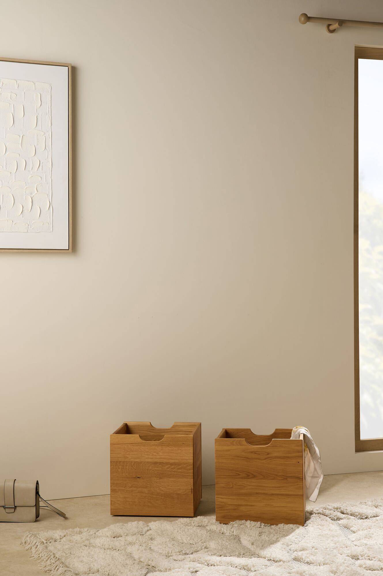 Fabriqués en chêne massif ou en hêtre massif, ces cubes sont dotés de roulettes discrètes qui facilitent leur déplacement au gré de vos besoins. Parfaits pour ranger chaussures, accessoires ou objets du quotidien, ils se glissent aisément sous un banc de la collection Cyriel ou s’utilisent séparément pour un rangement supplémentaire.