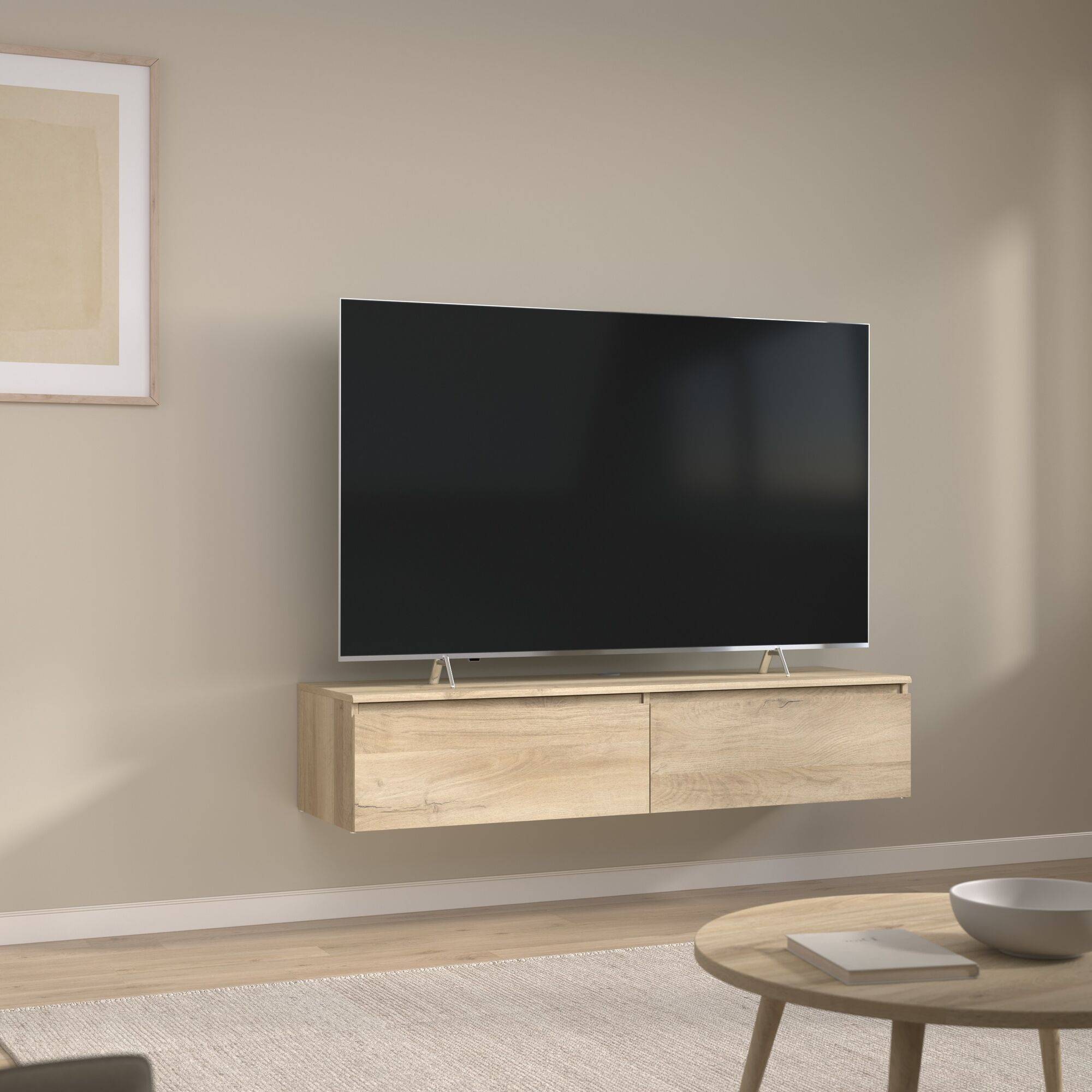Meuble TV décor bois 2 tiroirs Pedro