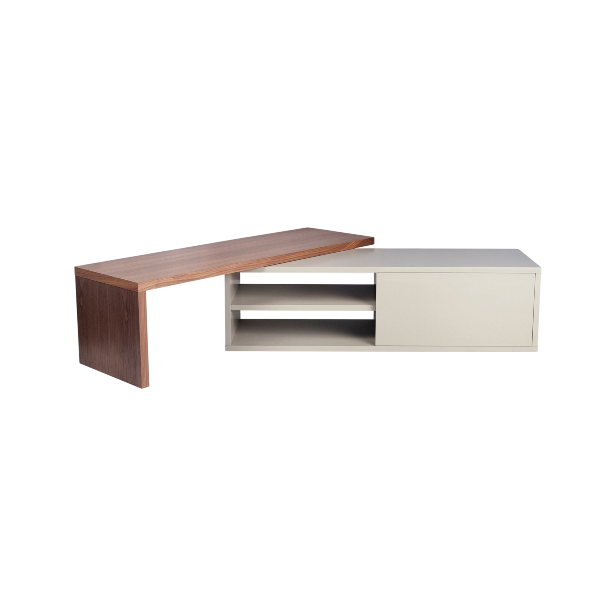 Le meuble TV Torre est un meuble TV élégant et astucieux. Il s’inscrit dans un style contemporain avec sa finition bicolore et son design minimaliste. C’est un meuble flexible avec son plateau supérieur coulissant qui peut être poussé et basculé pour occuper l’espace nécessaire uniquement. Il est possible de le positionner dans la longueur ou en angle. Il se compose d’1 porte coulissante avec 1 étagère et d’1 grande niche. Il est disponible en plusieurs finitions (laque satinée, mélamine et placage bois).