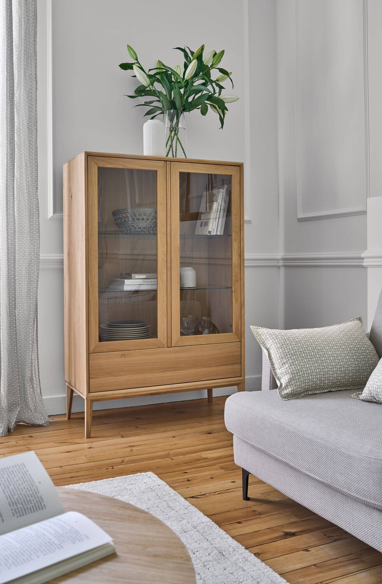 Apportez une touche de raffinement à votre intérieur avec cette vitrine en chêne massif Charles à la finition huilée, qui allie élégance naturelle et modernité épurée.