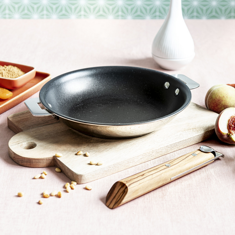 Grâce à sa finition effet miroir, la poêle Casteline passe du feu de cuisson à la table avec élégance. Son fond thermodiffuseur permet également de conserver la température de votre préparation lors du service.