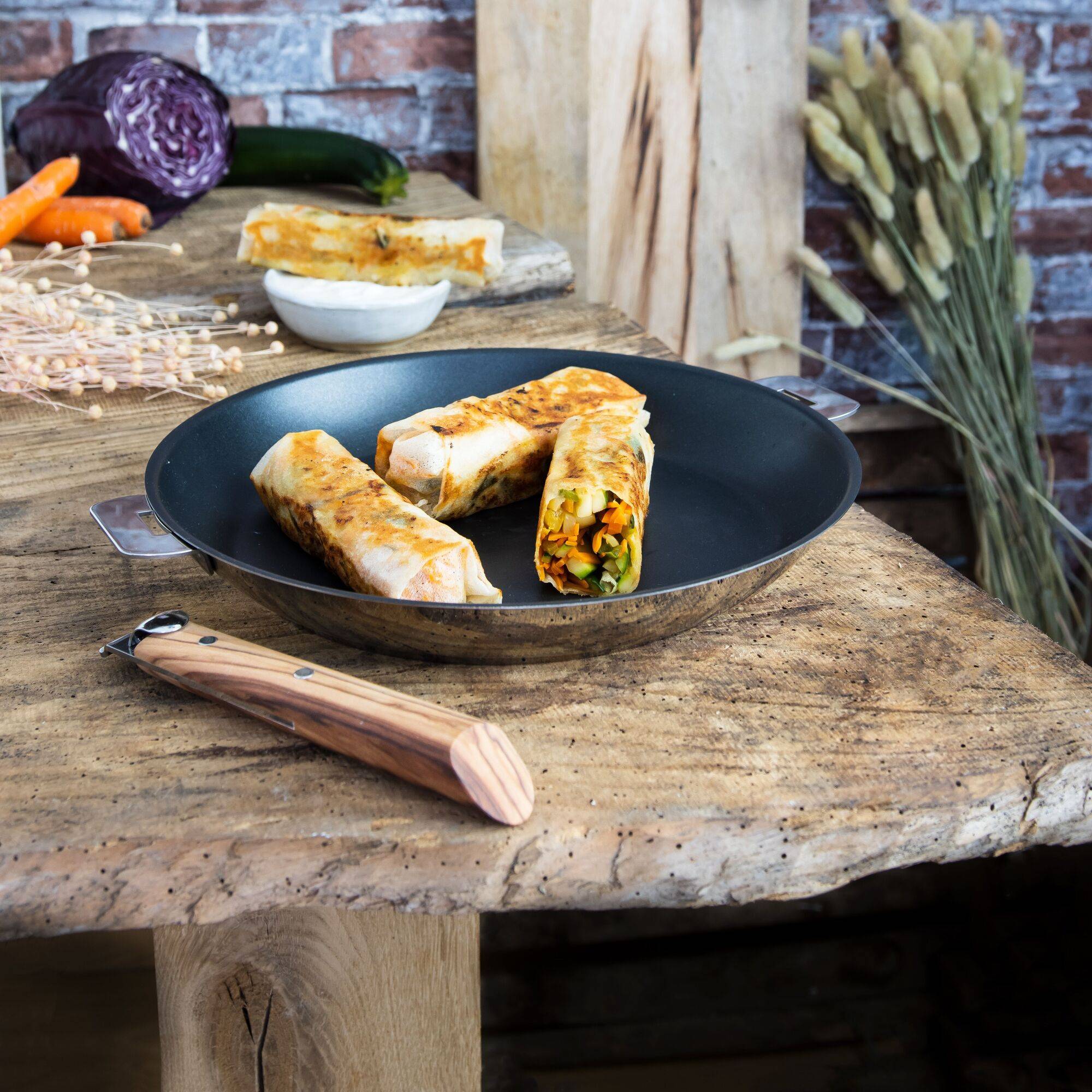 Grâce à sa finition effet miroir, la poêle Mutine passe du feu à la table avec élégance. Son fond thermodiffuseur permet également de conserver la température de votre préparation lors du service.