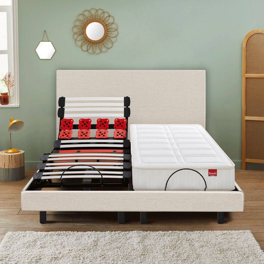 Le sommier électrique Escapade d’Epeda vous offrira un confort garanti par ses 5 plans de couchage, idéal pour se détendre en toute sérénité. Ce sommier vous offrira un soutien morphologique. Grâce à un dos déployant et des pieds plongeants, vous pourrez régler la position du sommier selon vos envies. Le sommier est composé de plots pour assouplir la zone épaules. Les bi-lattes en zone bassin sont réglables pour un confort ajustable.