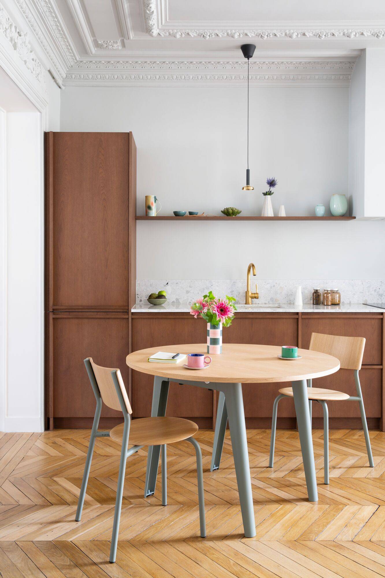 Grâce à sa forme arrondie, la table s'intègre parfaitement dans une maison au style contemporain. Plusieurs coloris de piètement sont disponibles pour ajouter la touche colorée qui vous ressemble.