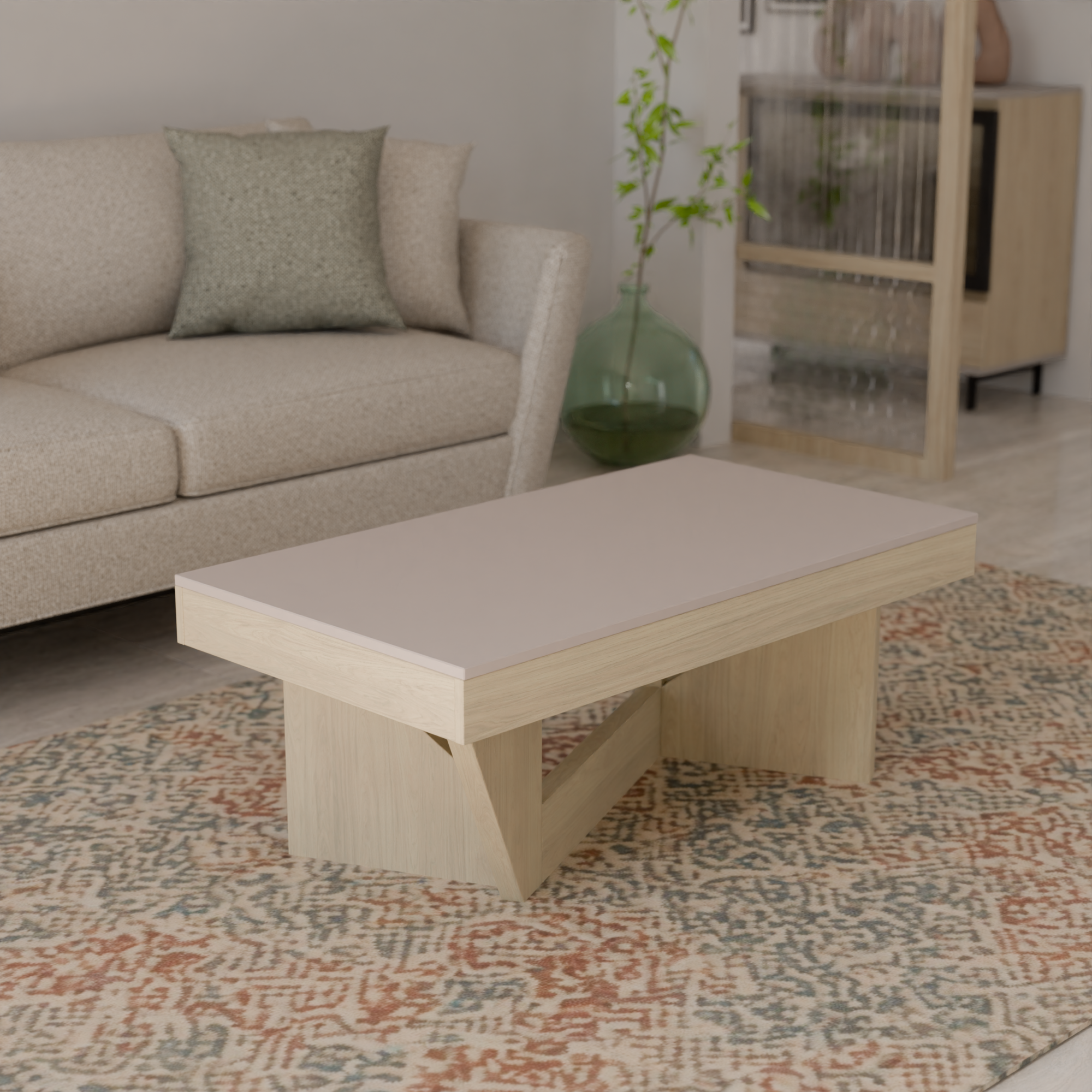 La table basse relevable Gabriela se distingue par son pied au design unique, apportant une touche singulière et moderne à votre intérieur. Polyvalente et astucieuse, cette table en panneaux de particules dispose d’un plateau relevable qui offre une hauteur idéale pour vos repas ou vos moments de travail.