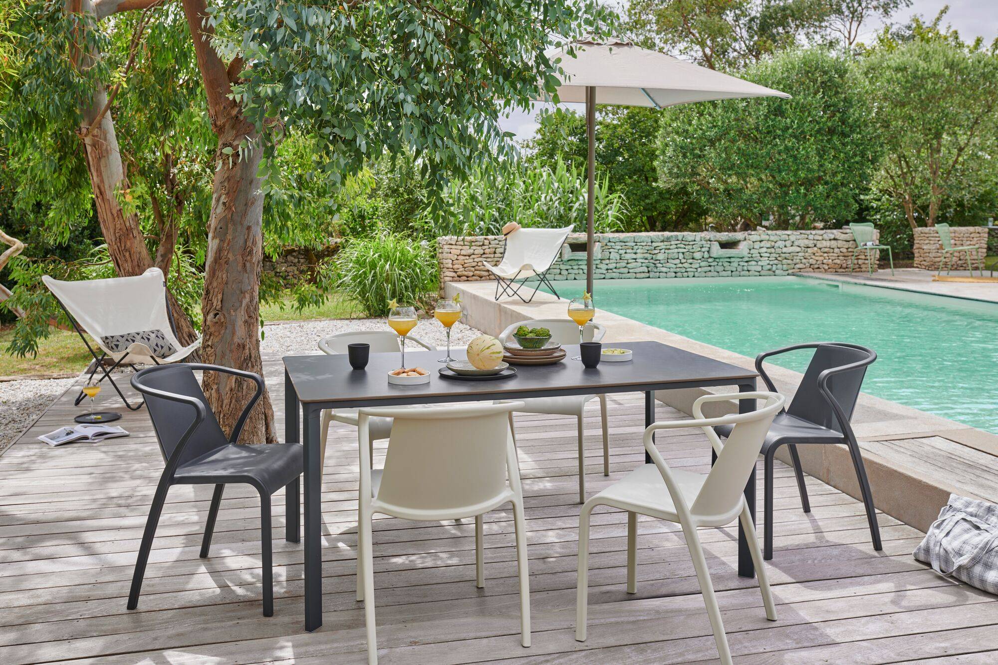 Cette table offre une solution de repas qui vous permettra de profiter de votre extérieur : elle est résistante aux UV et aux aléas climatiques. Elle possède un plateau en stratifié compact HPL (High Pressure Laminate), est un matériau issu de la fibre de bois compressée non-poreux qui facilite son nettoyage. Sa structure en aluminium en fait une table légère mais résistante.
