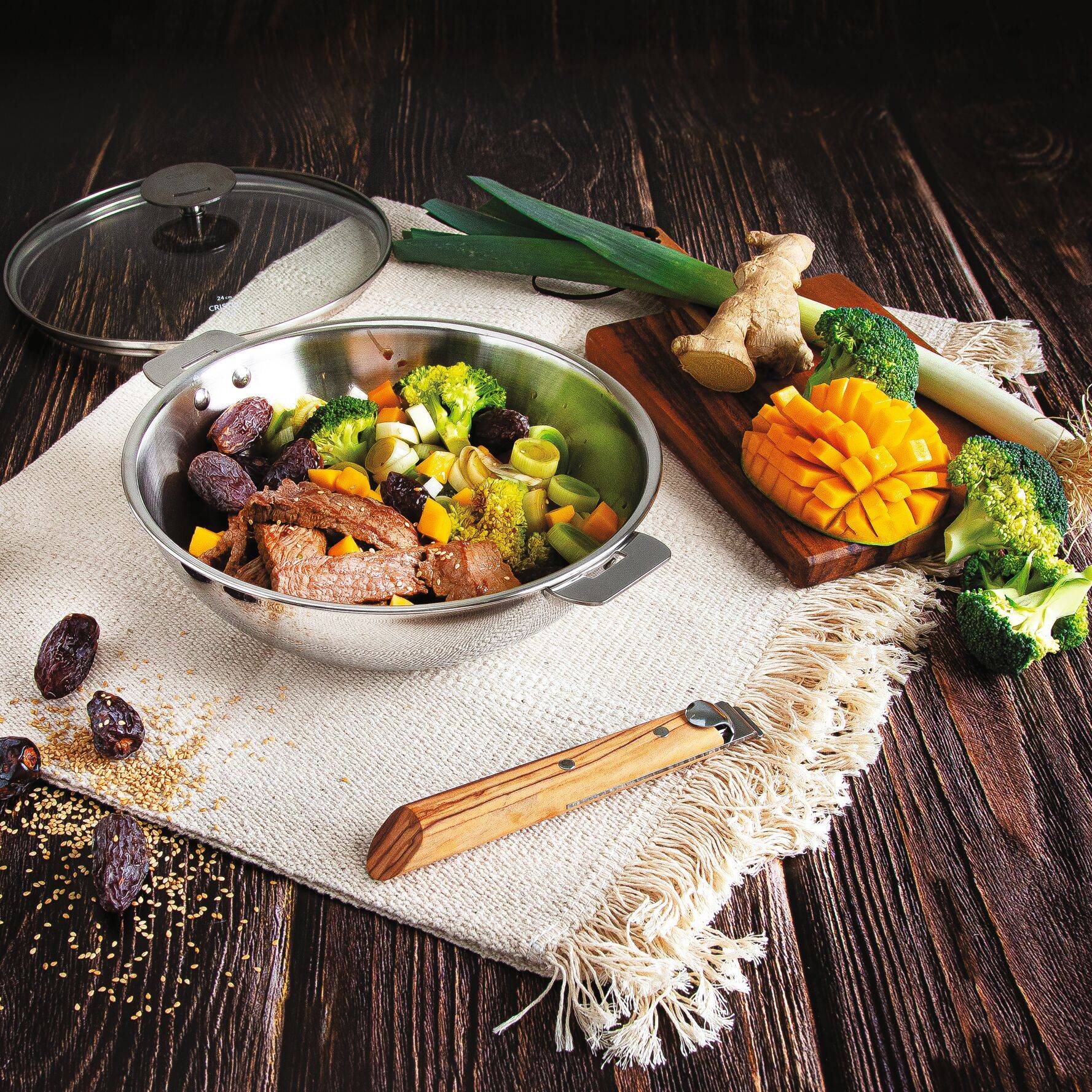 La forme évasée du wok permet de chauffer les aliments de façon uniforme avec peu de matière grasse. La conception en multiples couches des woks CRISTEL améliore encore ces qualités propres au wok.